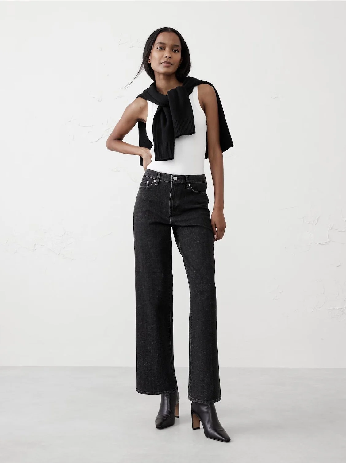 A black tank top is a versatile staple. Simple yet stylish.
